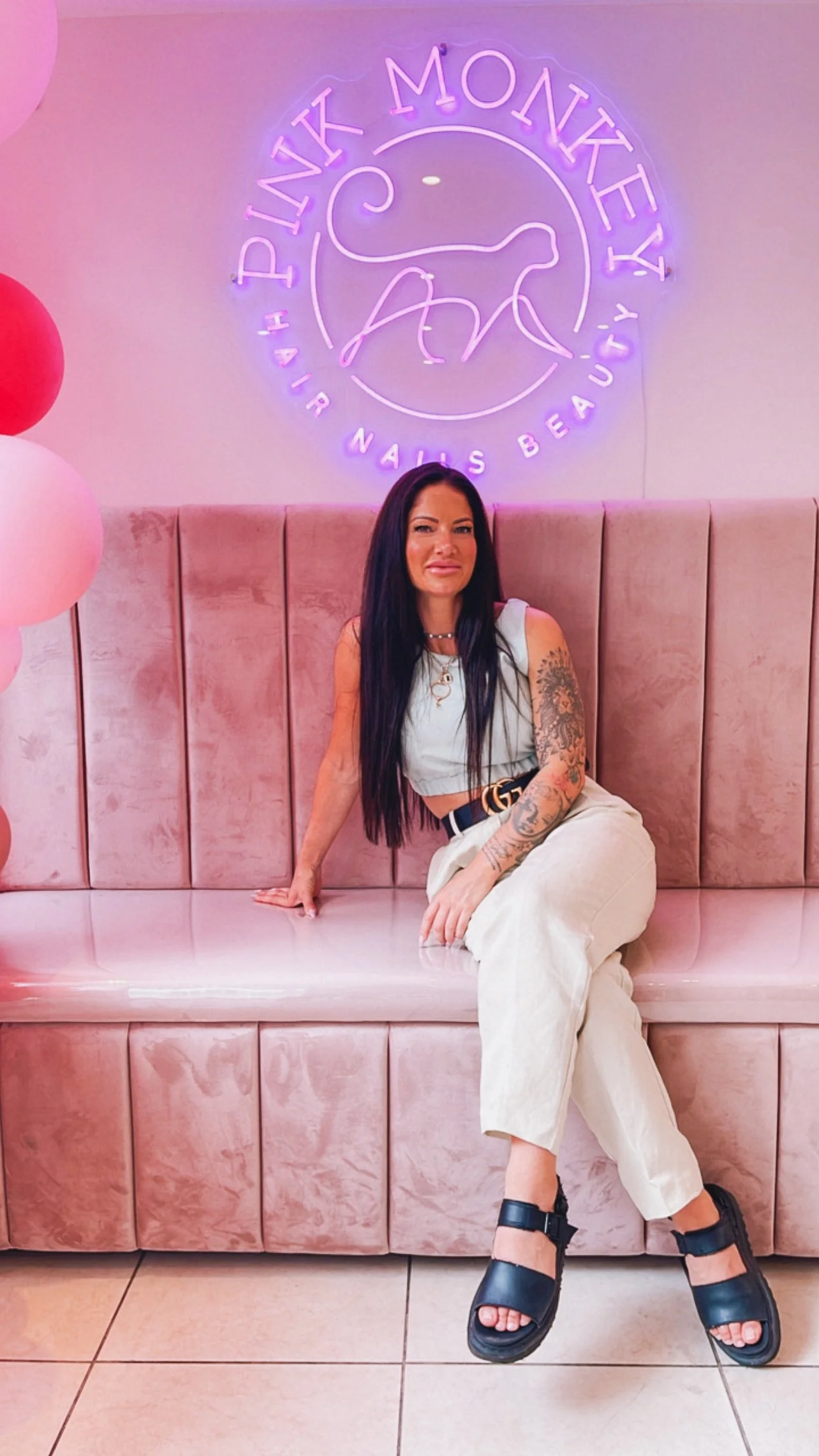 I came up with this name a year before getting my salon. I have two beautiful children and I went through the stage of calling them MONKEYS and because they’re girls we went for Pink. i didn't want the conventional beauty salon name, I wanted something different and it just works.